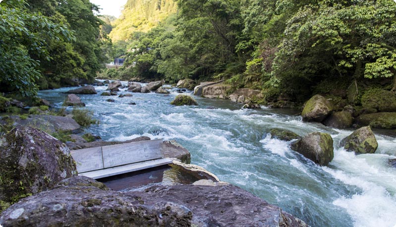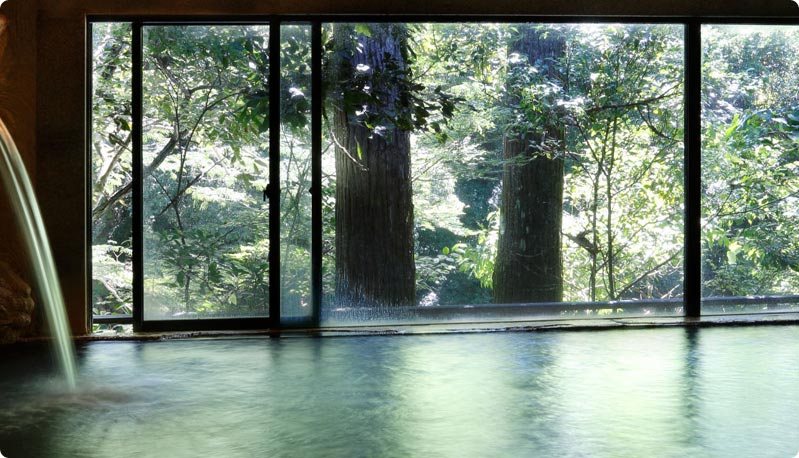 원천 근처에 욕조를 만들어 신선한 온천수를 즐길 수 있도록 5가지 온천탕을 준비하고 있습니다.